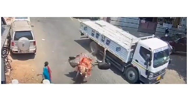 ಏಕಾಏಕಿ ಬೈಕ್ ಸವಾರನಿಗೆ ಗುಮ್ಮಿದ ಕೋಲೆ ಬಸವ; ಪವಾಡ ಸದೃಶ ಪಾರಾದ ಸವಾರ