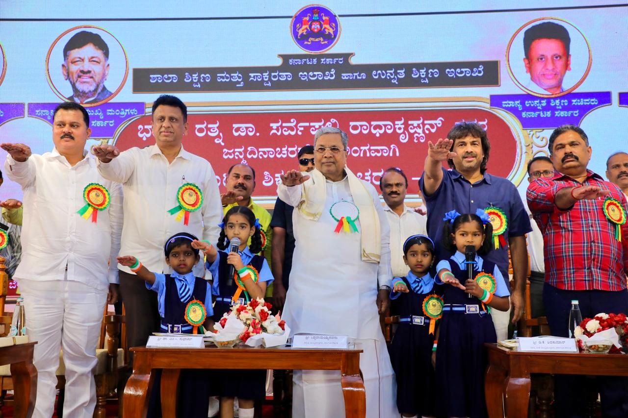 ಬ್ಯಾಂಕ್ವೆಟ್ ಹಾಲ್ ನಲ್ಲಿ ನಡೆದ ರಾಜ್ಯ ಮಟ್ಟದ ಶಿಕ್ಷಕರ ದಿನಾಚರಣೆ ಕಾರ್ಯಕ್ರಮದಲ್ಲಿ ರಾಜ್ಯ ಪ್ರಶಸ್ತಿ ಪುರಸ್ಕೃತ ಶಿಕ್ಷಕರಿಗೆ ಪ್ರಶಸ್ತಿ ನೀಡಿ ಅಭಿನಂದಿಸಿ ಮಾತನಾಡಿದರು.